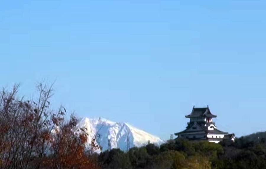 本日の朝9時・・・木津用水近傍のライブカメラ映像に真っ白な御嶽山と犬山城が映っていました。左側の樹木が邪魔ですけどね・・・いよいよ真冬が到来してます。昨日までは見られなかった光景です!