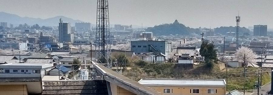 過日、犬山城と小牧城がサイドバイサイドに並んでいる素敵な写真をネットで見付けました。我が家の近くではこうならないので、雪もほぼ融けた今日の夕刻、お隣の鵜沼緑苑団地で探したら・・・ありました!
